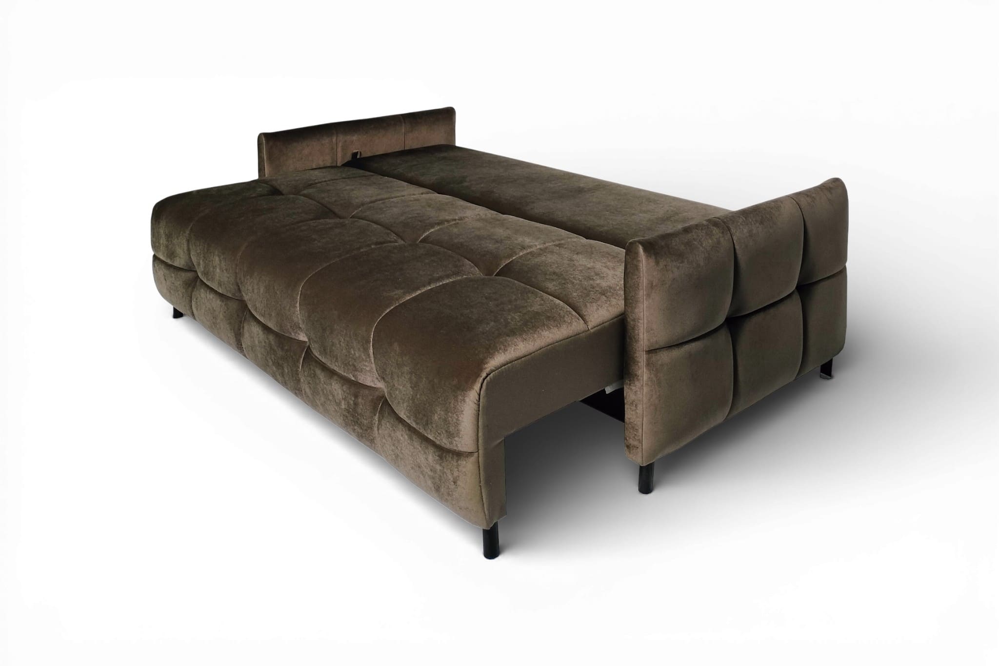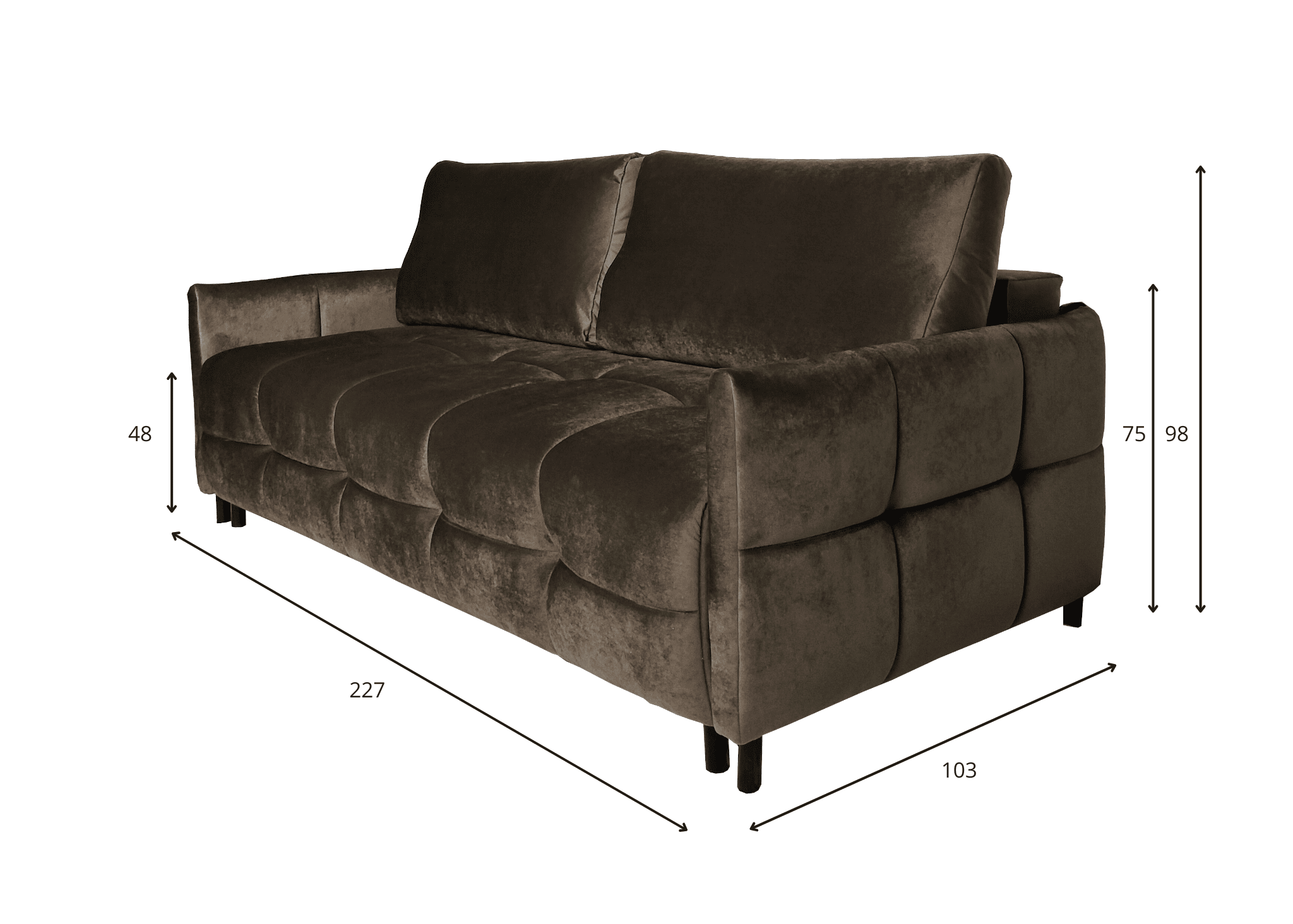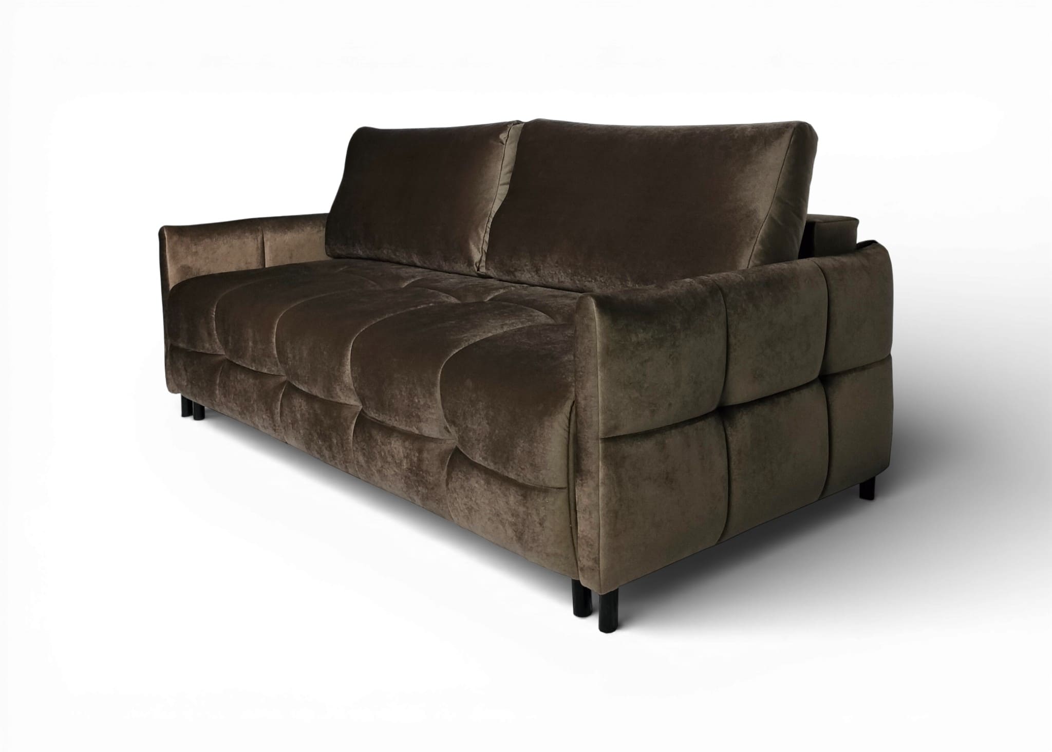 Kanapa charakteryzuje się prostą, nowoczesną formą oraz wyraźnie zaznaczonymi