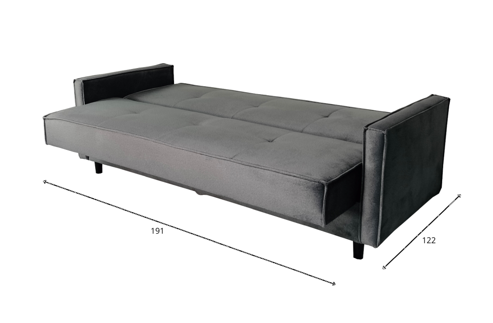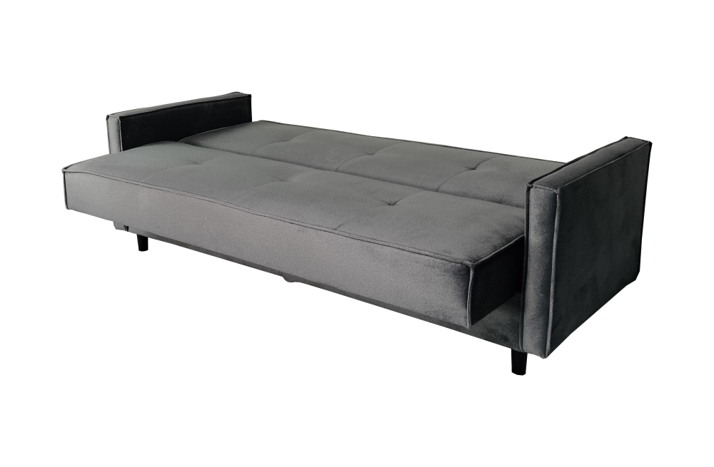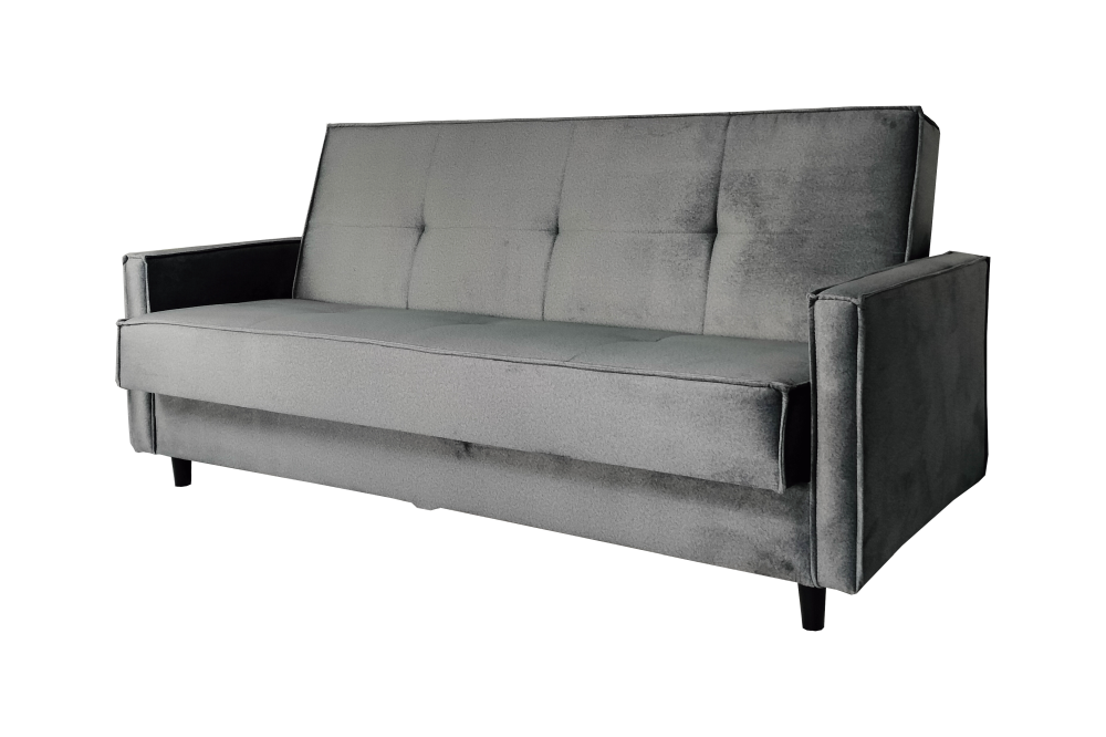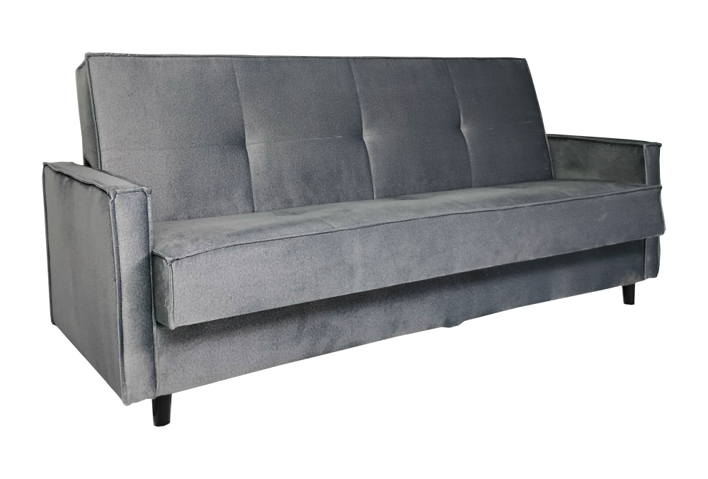 Bryła mebla prezentuje nowoczesną, uporządkowaną linię. Detale tapicerskie (podziały, przeszycia oraz kształt poduszek)